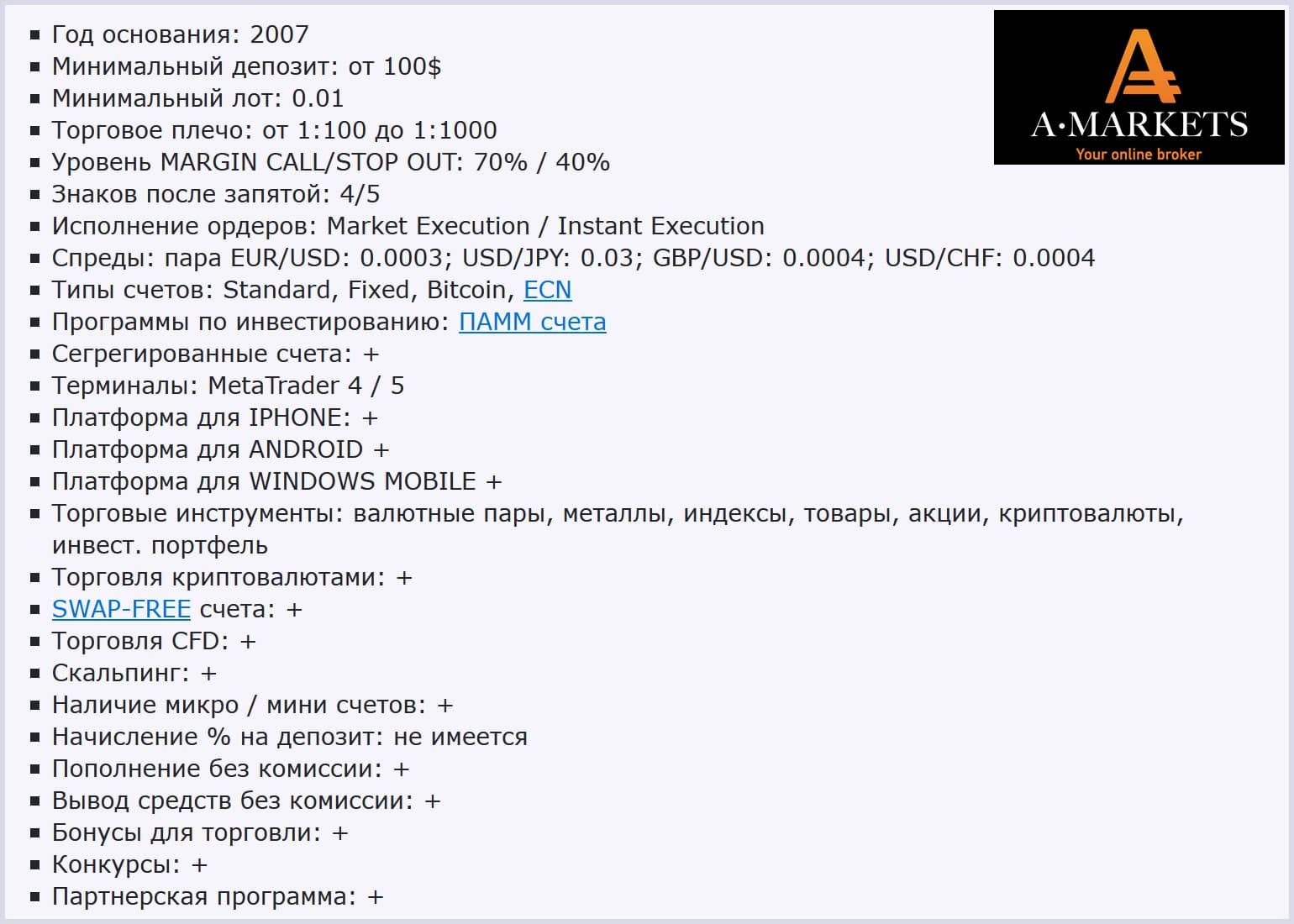 7 коммент. к статье "AMarkets — отзывы и обзор брокерской компании"