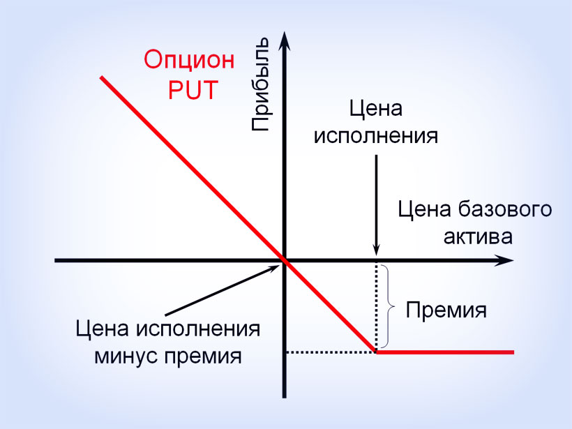 Иными словами, это опцион, который уходит на продажу. Фактически, это стандартный контракт, который предоставляет трейдеру право продать некоторое количество из БА продавцу опциона по строго определённой ценовой котировке. Однако это только право, но не обязательство. Это право распространяется на весь период действия бинарного опциона.