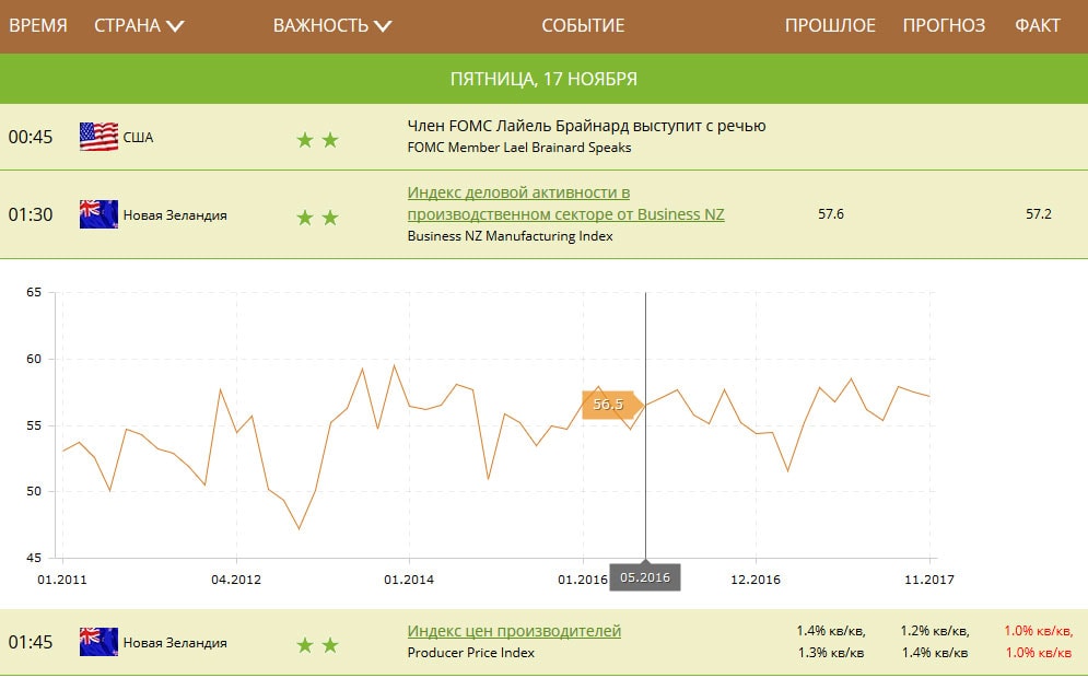 Кликнув в таблице по интересующей вас новости, можно узнать важную информацию о том либо ином экономическом индексе и изучить статистику прошедших периодов.