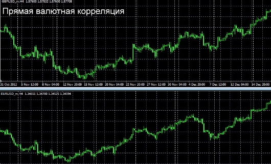 Различают две разновидности валютной корреляции – положительная и отрицательная. Положительной (прямой) называют корреляцию, когда ценовое изменение валют происходит в одном направлении, т.е. при росте стоимости одной, возрастает и стоимость иной.