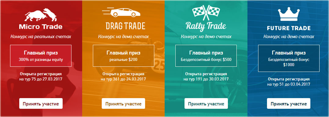 В настоящее время многие дилинговые центры запустили свои собственные конкурсы для трейдеров на реальных счетах. Ниже представлены наиболее интересные предложения: