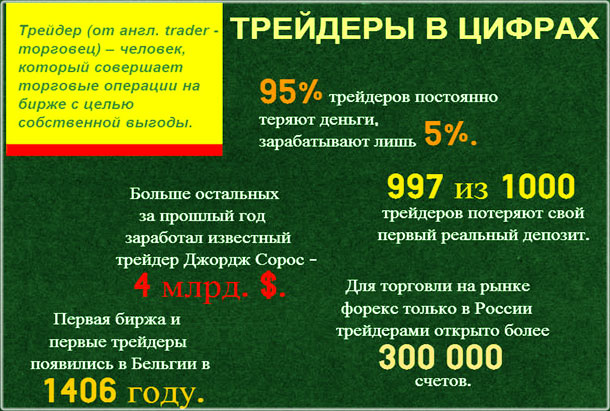 Итак, с рынком валют мы разобрались, но новичку решившему освоить основы важно знать, кто есть трейдеры и чем они занимаются. Большинство людей, не изучивших основы Форекс трейдинга, представляют себе трейдеров некими удачливыми игроками, сравнивая их деятельность с игрой в игорных заведениях. Но это совершенно не так.