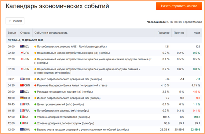 Терминал предлагает подробный календарь экономических событий.