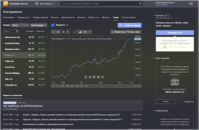 Как начать действовать на бирже используя платформу Libertex от брокера Forex Club?