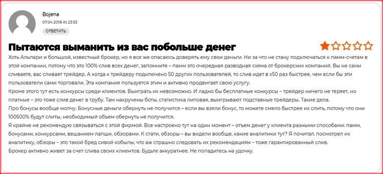 Изучим негативные отзывы о брокере Alpari, их мотив и сделаем вывод