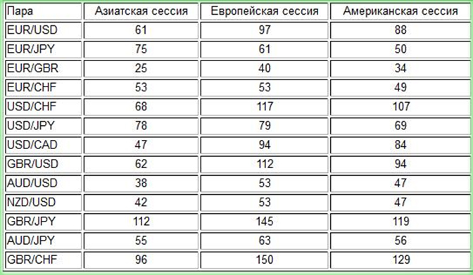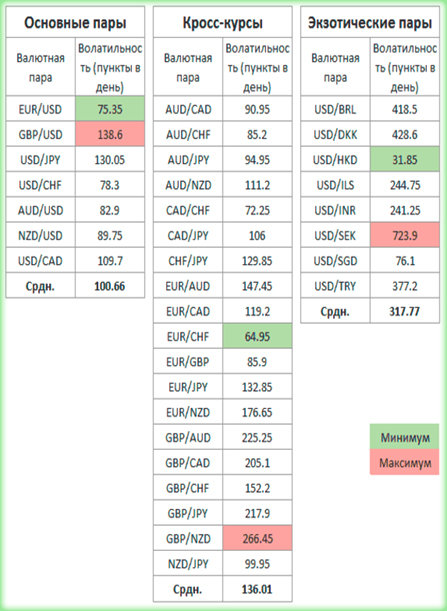 Благодаря таблице, можно посмотреть, как выглядит волатильность разных валютных пар: