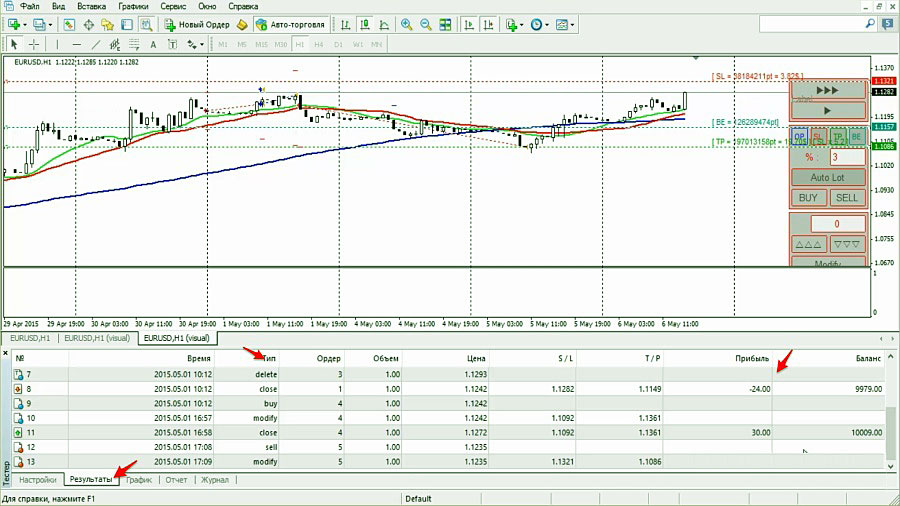 Как и при работе с торговым терминалом, в ходе тестирования формируются отчеты о результатах совершенных сделок. Примечательно то, что можно проводить тестирование бесплатно на одних и тех же временных периодах с различными настройками торговой системы, чтобы в последствии выбрать самый оптимальный вариант.