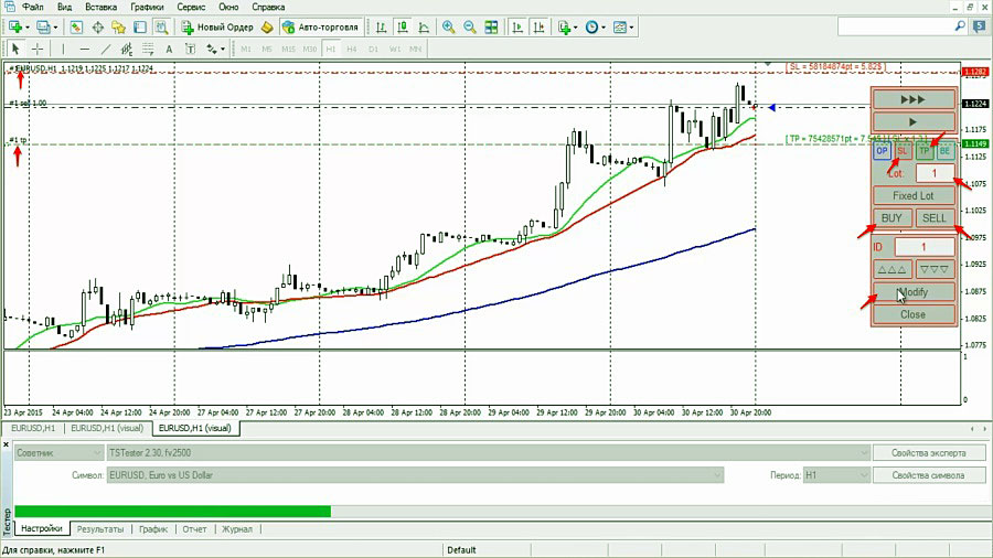 Что касается интерфейса тестера, а именно его версии на русском языке, то он интуитивно понятен и достаточно прост, даже очень напоминает рабочий экран терминала МТ4.