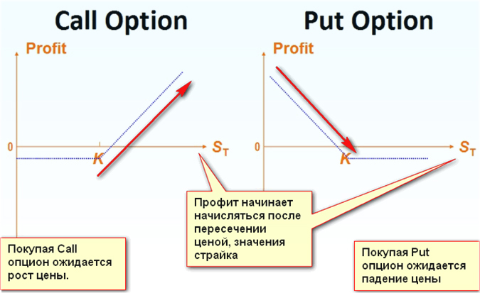 Положительные моменты в торговле опционами: трейдер рассчитывает на то, что при покупке контракта базисный актив (акции и прочее) достигнет в будущем роста или падения. В удобный момент опцион продают или покупают.