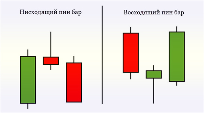 - увидев пинбар, указывающий вверх, понимаете, что цена выросла до максимума, а курс развернется и начнет падать – время продавать.