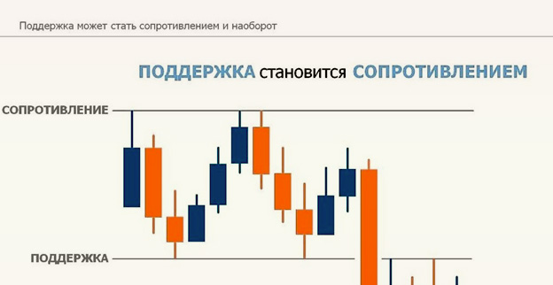 Например, если в торговле ценовой диапазон финансового инструмента пробивает границы уровня поддержки, то он по отношению к ней сразу же становится сопротивлением.
