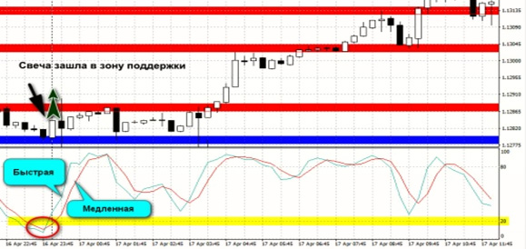 Стратегия торговли по уровням приведённая ниже будет трендовой, внутридневной, она рассчитана на краткосрочный-среднесрочный трейдинг. Для нее подойдут любые таймфреймы. Участнику рынка рекомендуется пользоваться специализированными индикаторами — PowerDynamiteAreas и Стохастик. Их применение, впрочем, не обязательно – опытный профессионал и сам прекрасно справится с определением уровней.